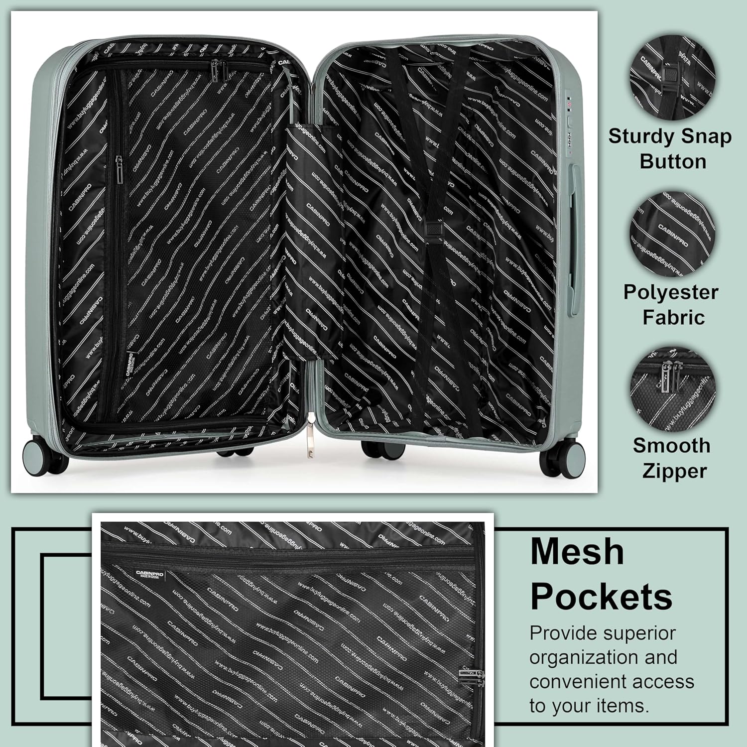 Upgrade Capacity with Expansion: Our Cabinpro CP003 series has an additional zipper which allows to extend the depth of the suitcase by 2 inch in the small, the medium and the large sizes. This allows you to pack up to 25% more (compared to the non-expanded trolley bags).