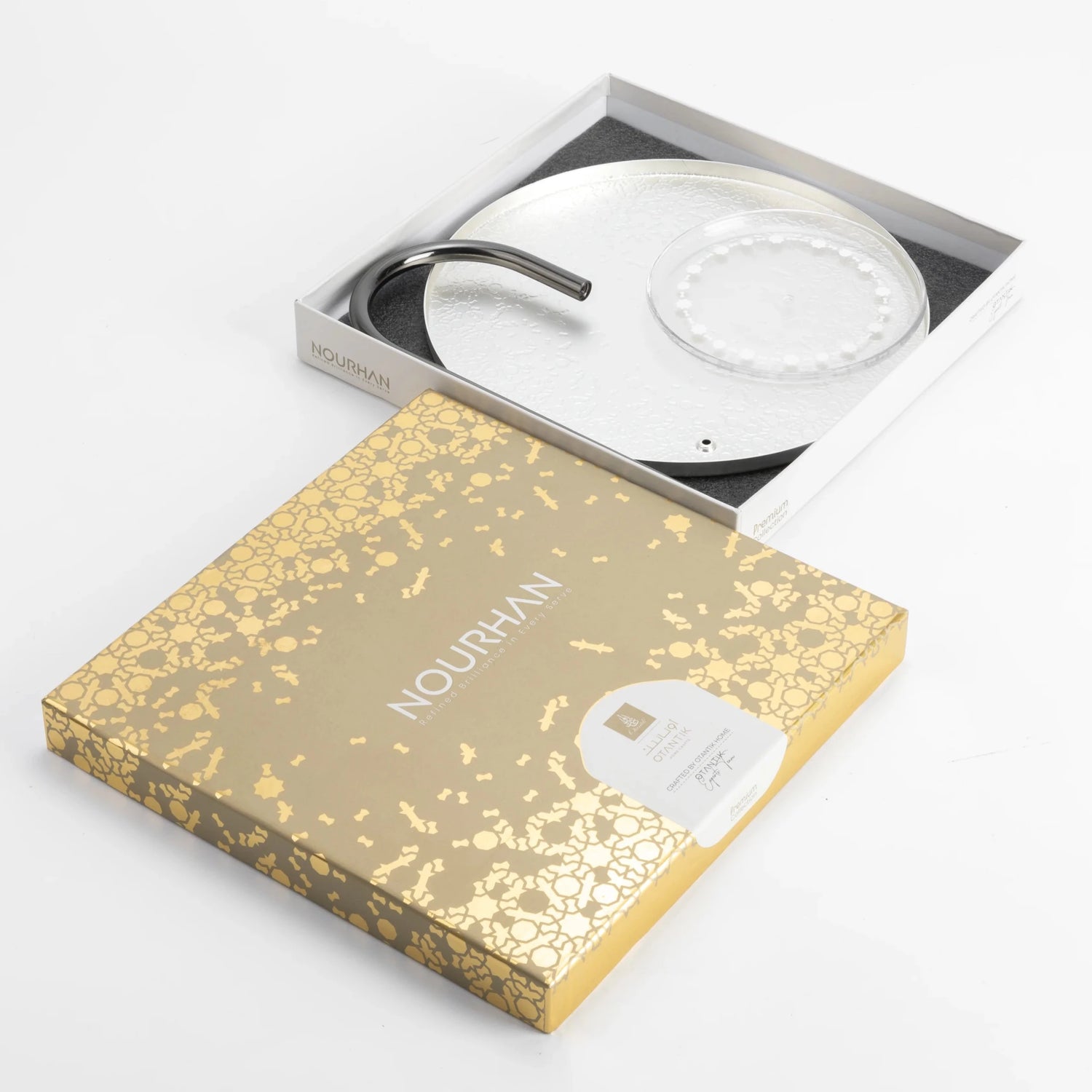 Otantik Stainless Steel Two-Tier Stand With Bracket From Nourhan - Matte Silver + Shiny Silver