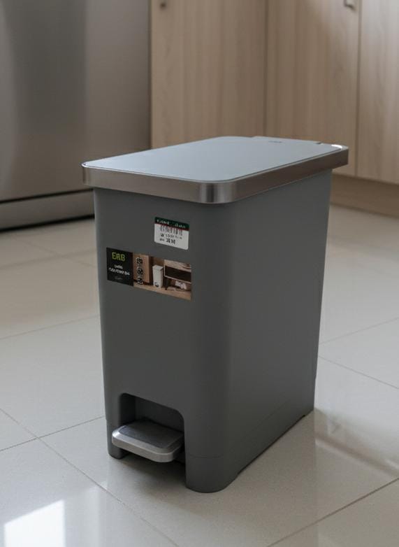 EKO Slim Pedal Bin 10 Litre – Premium Quality Stainless Look Plastic Dustbin, Gray Color for Modern Spaces