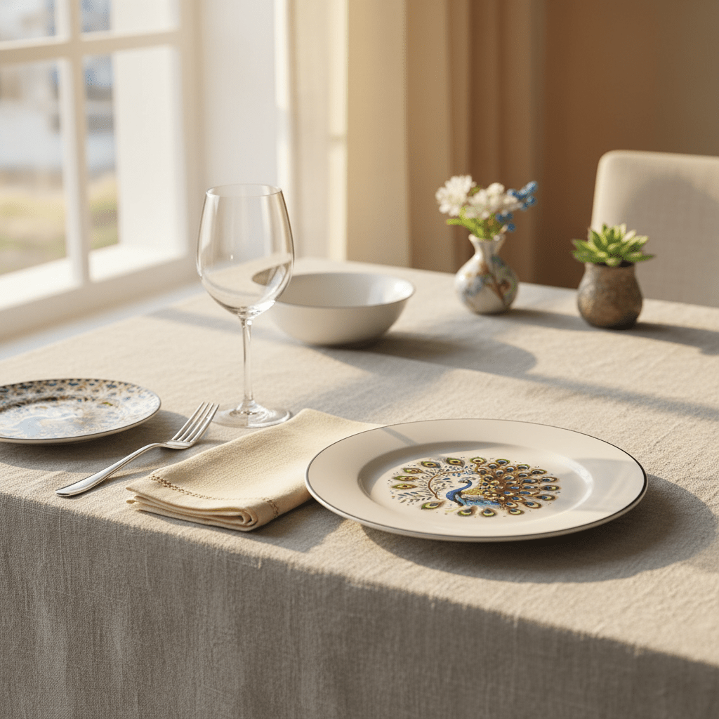 Bring cultural sophistication to your place setting with this 7.5-inch ceramic plate from Luhpar, showcasing an elegant peacock pattern on crisp white porcelain. The refined bird motif adds narrative depth and artisanal character to appetizer or dessert service while remaining understated enough to layer within a mixed-pattern tablescape. Ideal for intimate dining or as a complementary accent piece, the plate bridges functional tableware with decorative storytelling. Its versatile scale works equally well for everyday use or special occasions, making it a thoughtful addition to a curated collection or a distinctive gift for those who value design with cultural resonance.