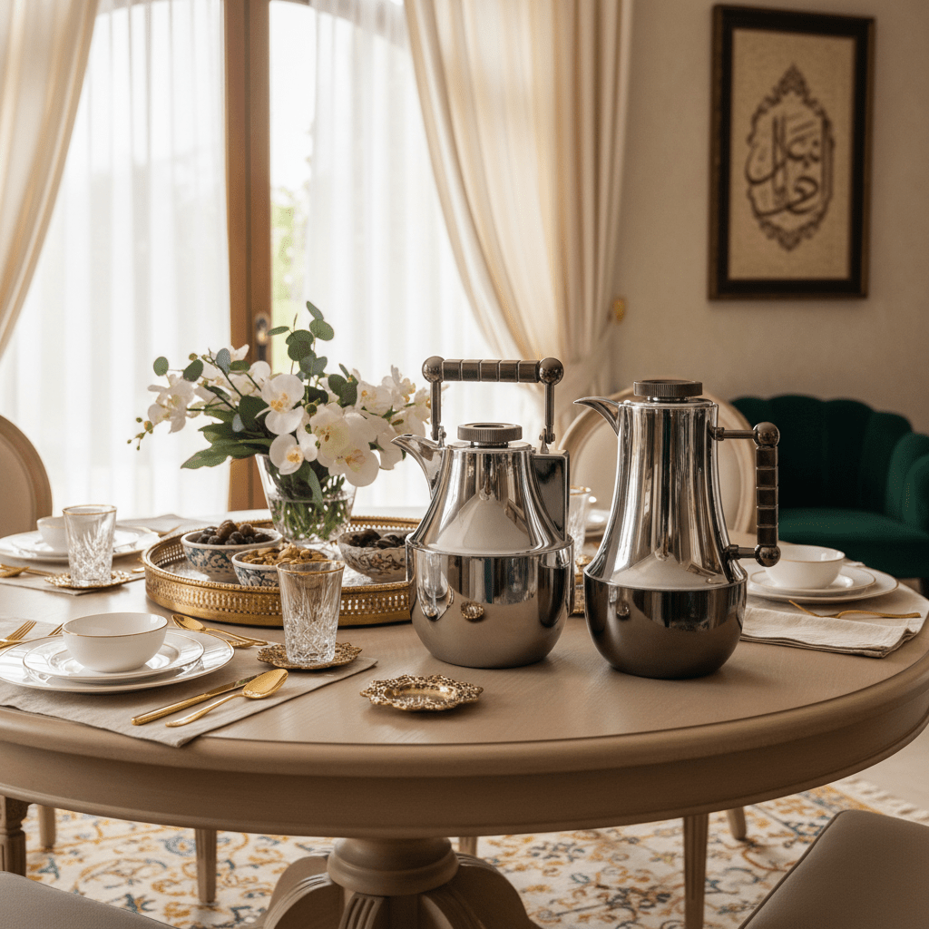 The Mahra Vacuum Flask Set seamlessly blends Middle Eastern hospitality traditions with modern design sensibility, making it an essential addition to any refined home.