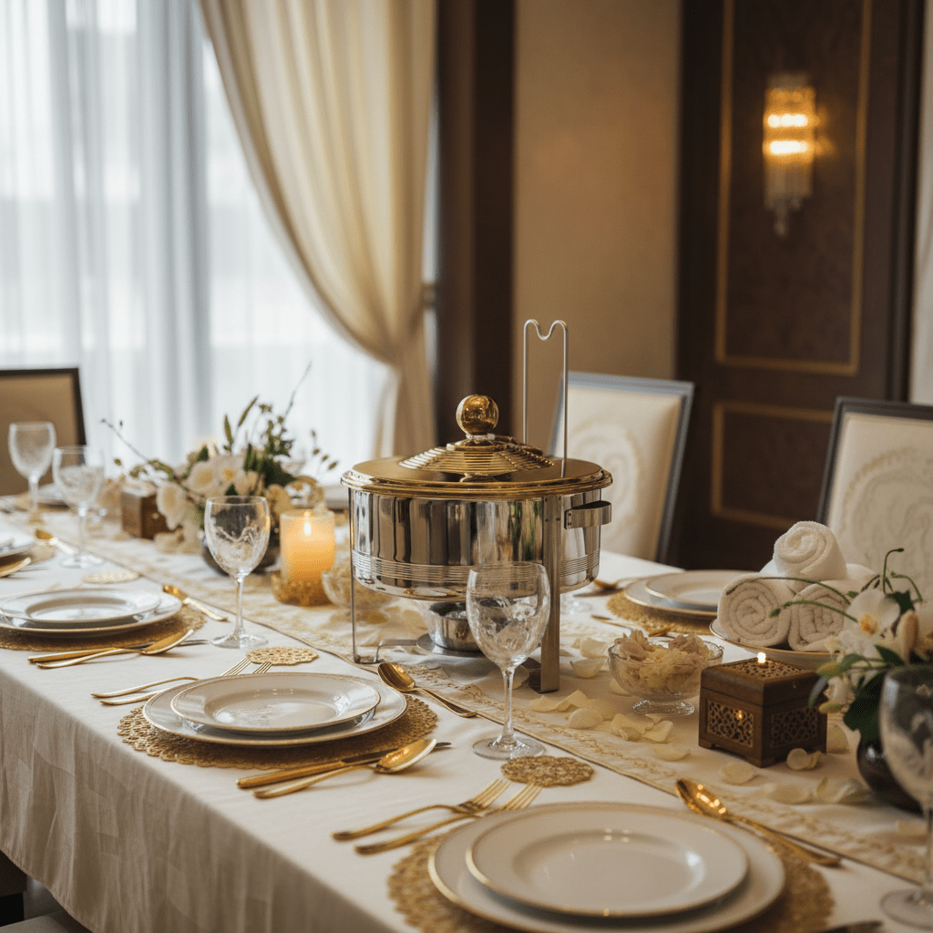 Perfect For: Ramadan iftars, wedding receptions, corporate events, holiday gatherings, or elevating everyday family dining. The timeless design complements both traditional and contemporary table settings.
