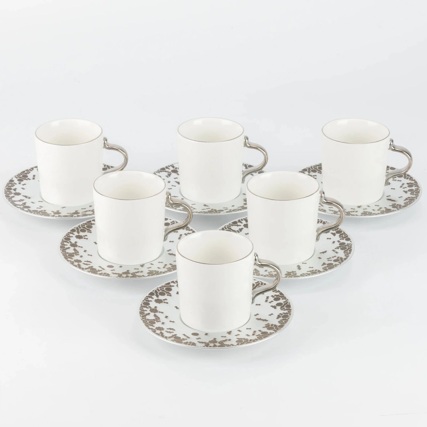 Otantik Nourhan 12-Piece Porcelain Turkish Coffee Set - Matte Silver 115CC