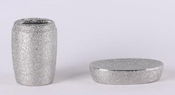 ORCHID 4pcs Ceramic Bathroom Set Shimmer(Soap Dispenser 300ml, Toothbrush Cup, Toothbrush Holder, Soap Dish), Silver