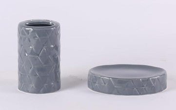 A practical 4-piece ceramic bathroom set with a modern grey finish. Contains a soap dispenser, toothbrush cup, toothbrush holder, and soap dish. The neutral color complements any bathroom decor. Sturdy ceramic construction ensures long-lasting use.