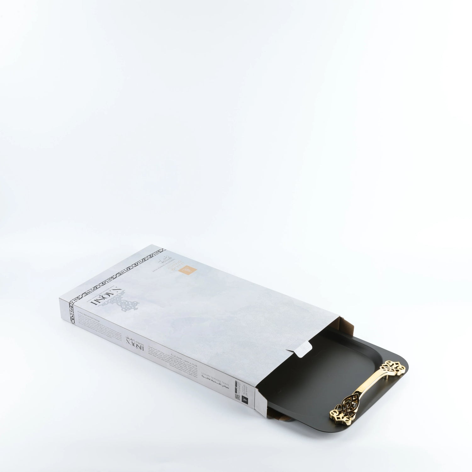 Otantic Naqsh Luxury Metal Serving Tray 52.7cm*32cm, Black/Gold- HJ1410