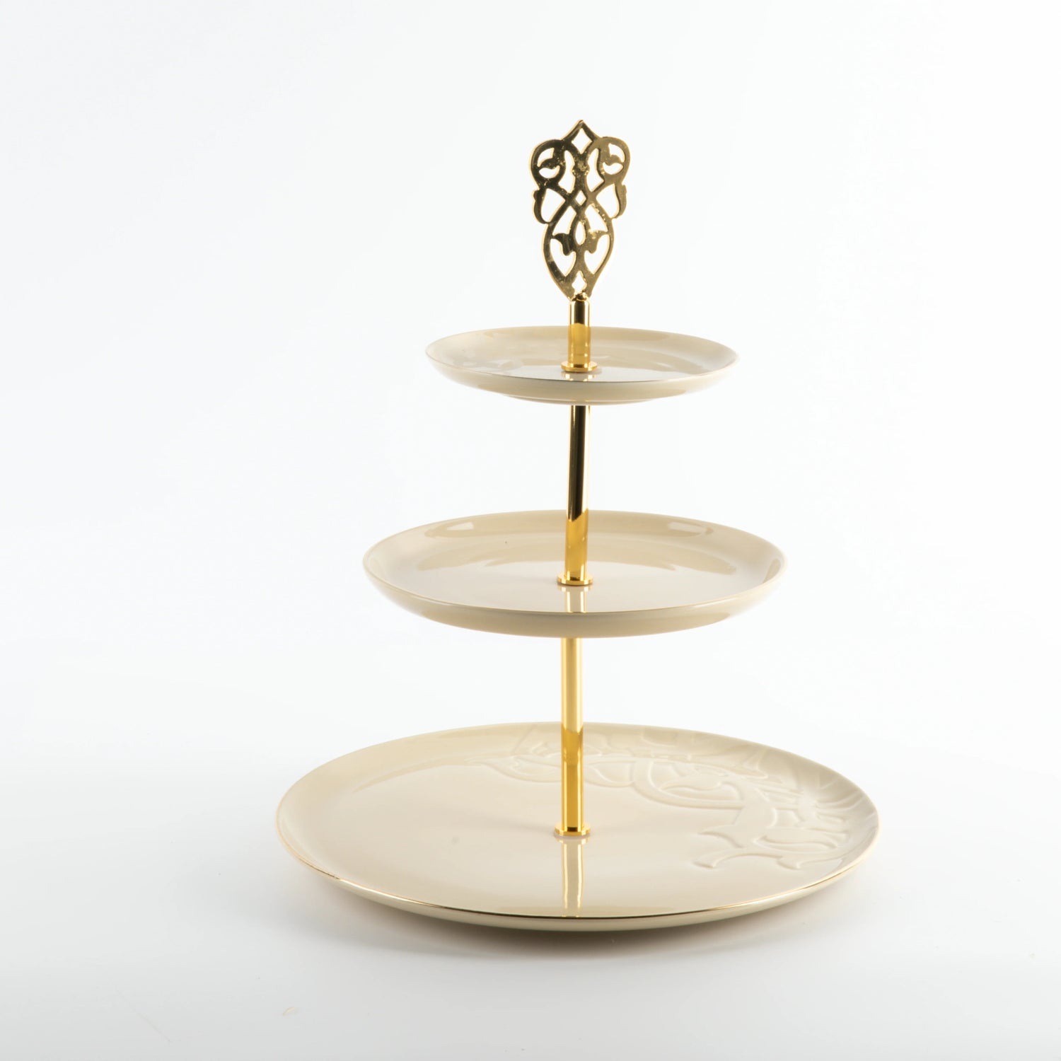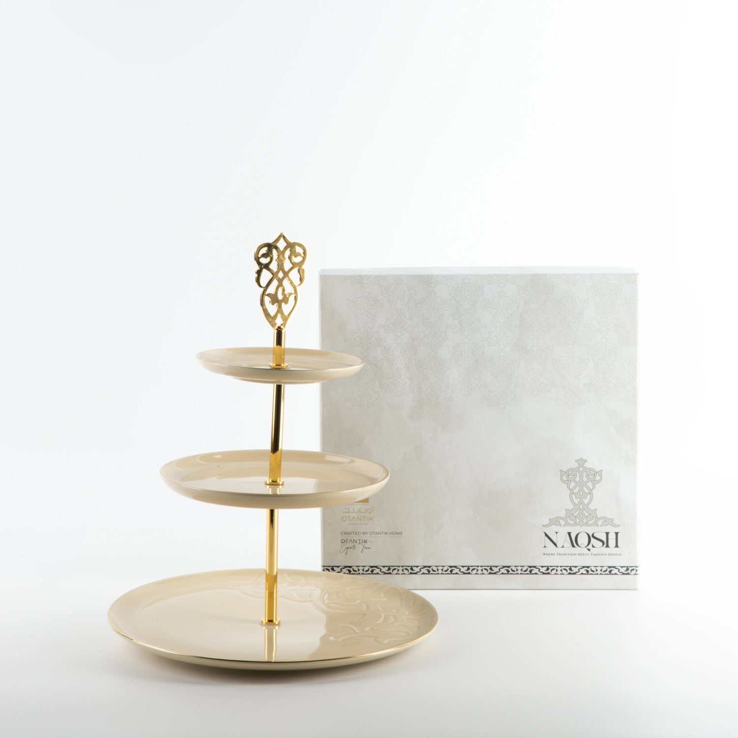 Otantic Naqsh Porcelain 3-Tier Candy Tray 27cm*33cm, Ivory/Gold- ET2987