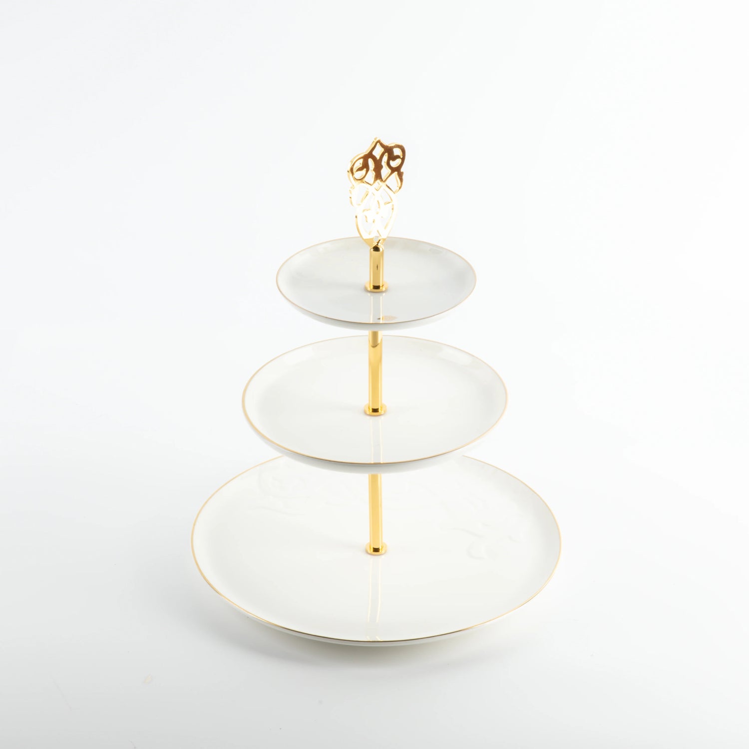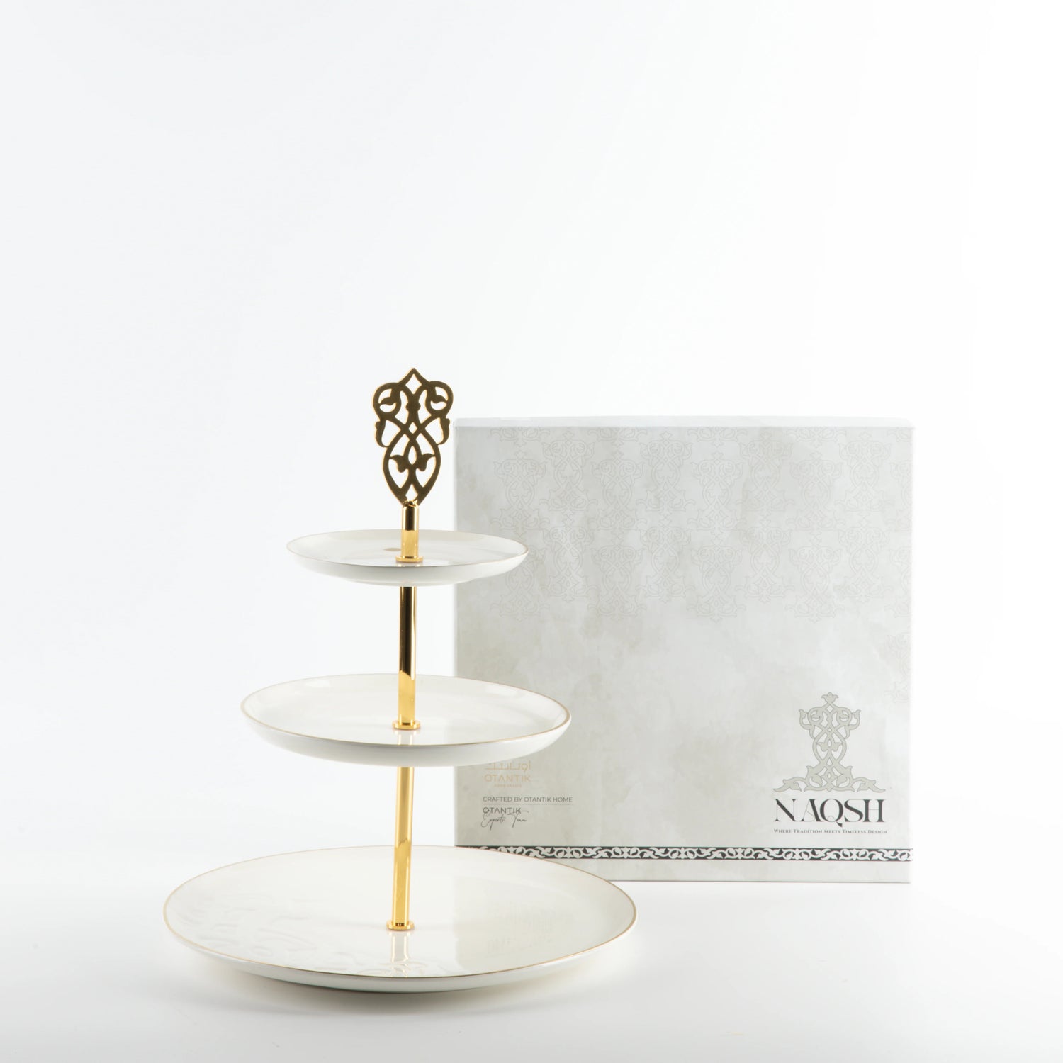Otantic Naqsh Porcelain 3-Tier Candy Tray 27cm*33cm, White/Gold- ET2985