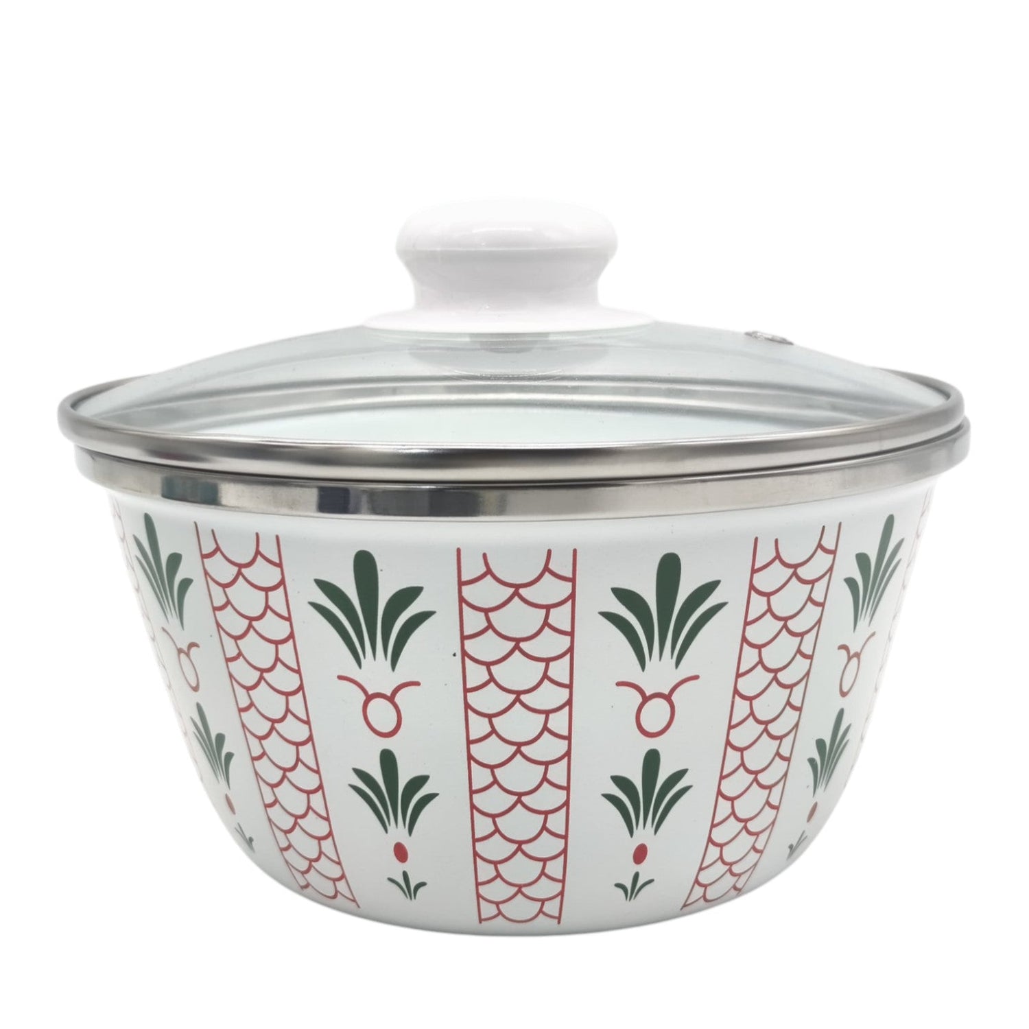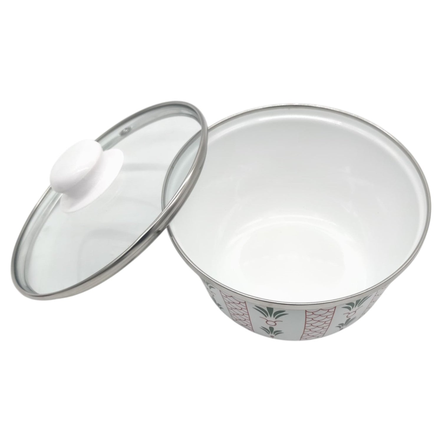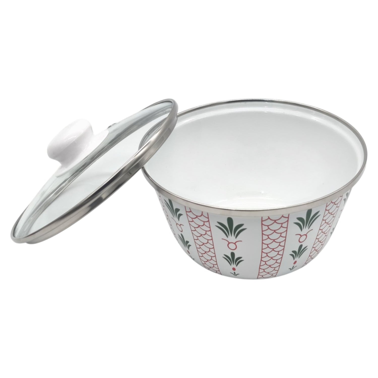 Simba Enamel Bowl With Glass Lid Mixing Bowl and Storage Pot for Kitchen Supply-18CM