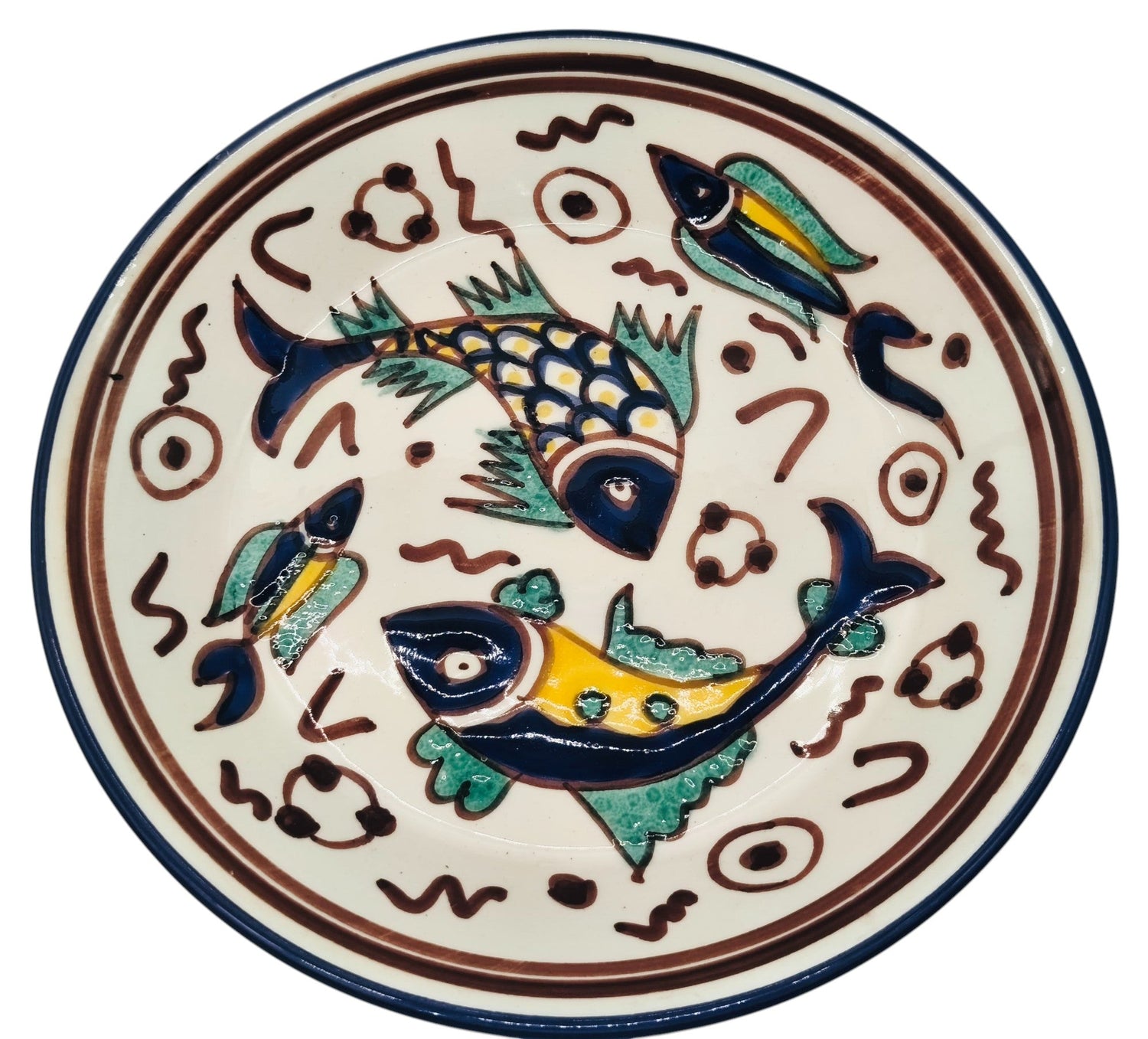 SLAMA Round Ceramic Plate 20cm, Multicolour Fish Design