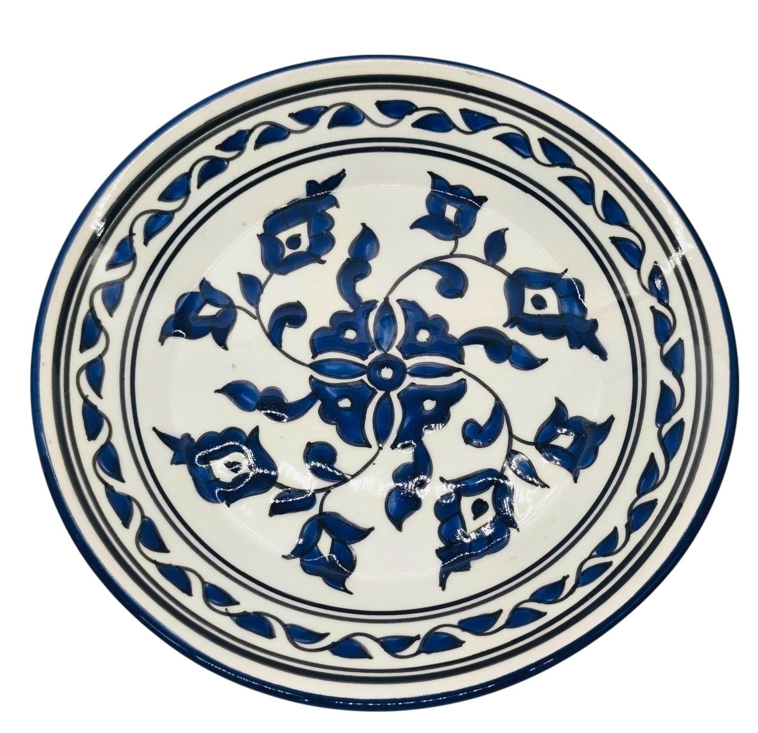 SLAMA Round Ceramic Plate 24cm, Floral Blue