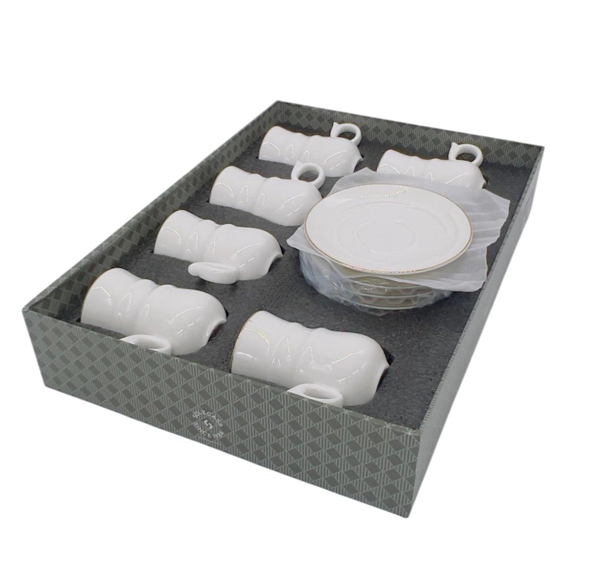SOLECASA Porcelain Cup and Saucer 6pcs Set 100ml, Low Handle Design, White